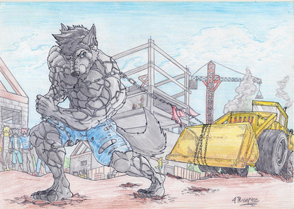 Here we find the fantastic lifting a Sherman tank in an overhead press. In the privacy of his scrapyard the shy Chester (Chet to his friends) enjoys exploring his impressive strength by tackling the toughest items on the heap to scrap by hand. Not knowing that his powerful feats were spotted by a nosey Lulu. ^-^Chet ©