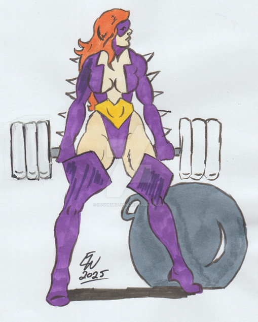 One of the most fantastic villainesses ever created it's Marvel's Titania a.k.a. Mary MacPherran. Drawn for she's pictured here wielding her husband's (The Absorbing Man) wrecking ball.I really like how this turned out. I adore drawing strong women especially the redheads. Right now I'm starting to lift more regularly and these pics are always a wonderful inspiration.