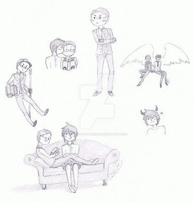 Ahh oh my gosh thank you so much Pixie!! THis was like such a surprise to see in my inbox, omfg. Both pairs are super cute, aww! I love how cute Penny turned out on the Vitrum doodle, hehe. <33 And Gavin would totally wear something like that, omg.