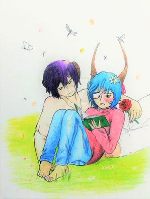 (And reading? YES) The whole setting is just super cute, oh my goshhh! Your pastels really make everything even cuter. ;u; The two of them are so cute omf I'm done. THANK YOU SOOO MUCH AHSJKDHKJSHRE