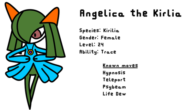 Miranda the ralts was born on a ranch with her many sisters. From birth Miranda loved to move. She was one of the first of her siblings to start walking (somewhat). She was always up and about, which became a problem for her loving Gardevior mother. One moment Miranda was on the ground and next she was up in a tree, about to fall down. She loved to play games with her sisters such as tag. However despite her activeness she was very clumsy, constantly tripping over rocks, pesky plants or even other pokemon. This didn’t stop Miranda though, no matter how many times she was tagged or hurt she kept her spirits up.