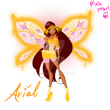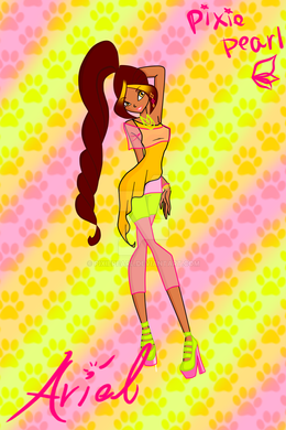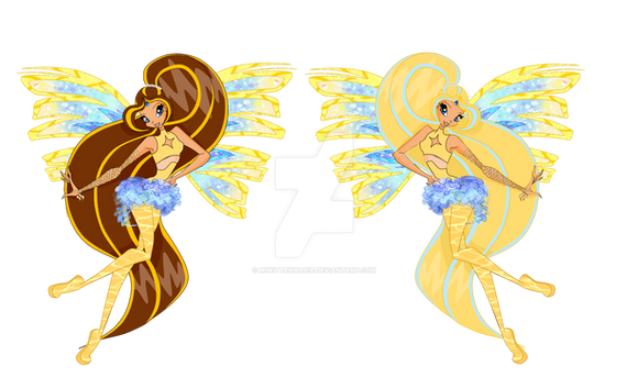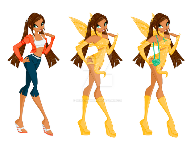 This is basically Ariel (my main OC: Fairy of Gems and Stones XD) in all of her three basic transformations: Magic Winx (