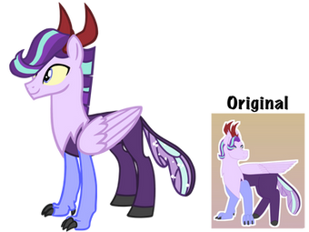 Bio: Although Trixie and Discord hated each other in the early years of their friendship, the duo found themselves crushing on each other. At first, they didn't quite understand how they could fall in love with the repulsive creatures they considered each other to be. Over time, they eventually confessed and began dating, much to the surprise of their friends. After a few years they got married, and Trixie freaked out when she suddenly found herself spawning an egg in the bathroom one morning. After about a year, the egg hatched, Bellatrix and was born. Being the narcissistic mare she is, Trixie insisted that her name be at least partially included in her child's.