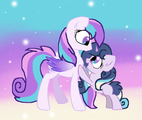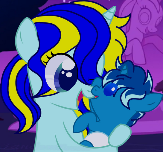Star: *thinking* Awww...what a cutie you are. *looks over and sees Crystal "Shield"* *out loud* Sweet Celestia, she's a twin?!