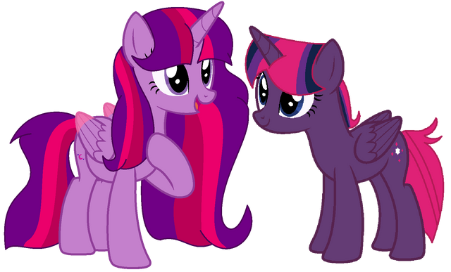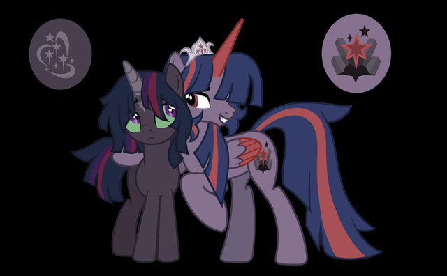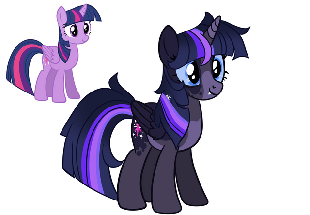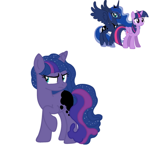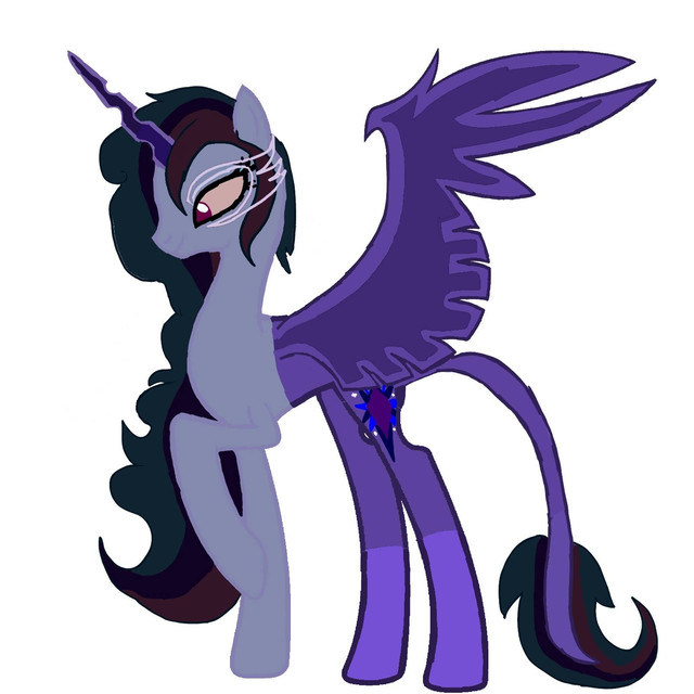 I finally gave her a name and manestyle! Much like in Hecate's universe, in Silent's, Twilight is also evil. She's the 2nd born, but ends up becoming the heir of the kingdom when her mother kills her elder sister, Dusk Dreamscape. Unbeknownst to Twilight, Silent inherited Luna's power on the day she was born. Being a blind alicorn (born unicorn, but assumed a natural-born alicorn, due to the fact that Twilight had just birthed her when she gained her wings and nopony knew otherwise), she was assumed weak. However, Silent will pull through in the end to end the reign of Twilight Sparkle, and, along with her friends, restore peace in Equestria.MLP Belongs To Hasbro