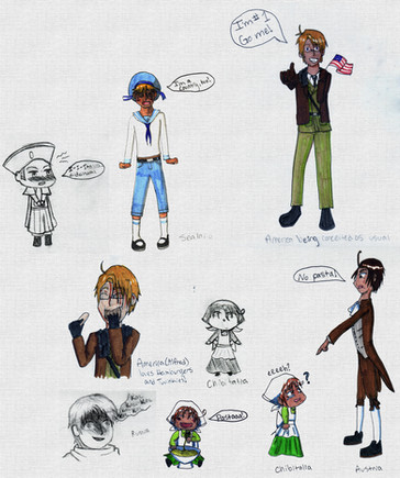 iNFO- shes a nice fun loving girl.But she also has a temper.ASnd a love for liquior XD She can really put them down. she cares alot about her friends. she nuteral so she has many friends all over they world. Because of the bandages on her chest and her boy cut hair, and height (5'9) she is often mistaken as England's brother even though shes his sister.And she ofetn dresses as a boy so not to be exc.uded by her brothers.She's the only girl.