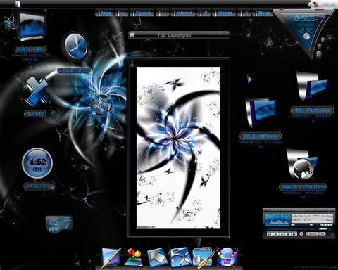 Just a single theme to match nuvem's brilhant wallpaper and my windowblind skin 1280x1024**UPDATE** Now a winstep Full Pack, including WorkShelf, with clock and recycle bin. Also showing in the ss the Alexandrie's ICQPlus skin.
