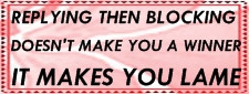 Yeah, but it's so funny to do that. It's hilarious when I reply and block someone who just ticks me off. I don't do it any other situation. Blocking is there for a reason, but that reason shouldn't be abused.