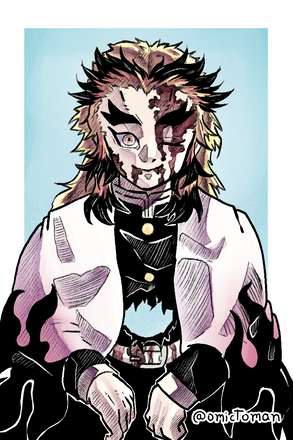 Aaaaand with that we're done! Artwork 6 out of 6 for the #SixFanarts (I'll post the full template tomorrow), the Fire Pillar Rengoku Kyojurou. I hope that smile shines as bright as I wanted it to. This was very chill and relaxing to draw, honestly, I had a great time. (but I'm still struggling with painting clothes tbh!)There's no sketch this time, since I pretty much went right into painting it. I think this is the only drawing of these 6 that I got done in a single day. It was fun! And I really like working on this style π