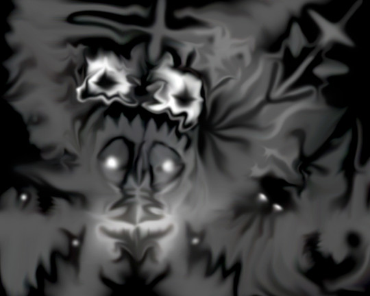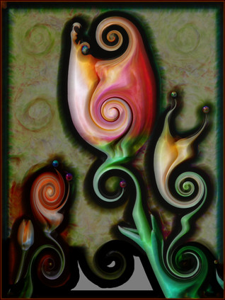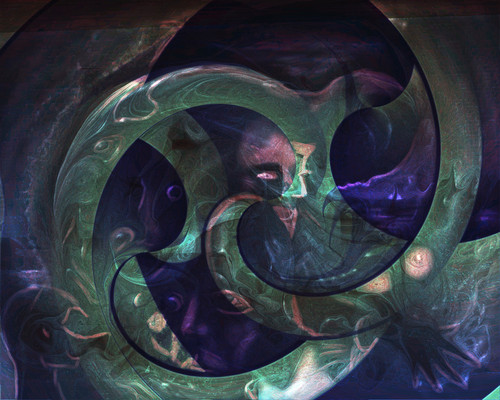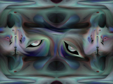 Oh I like this very much - its an octopus who is glaring at us from the frame. Eyes that are different colours are very pleasing but confusing. The colouring here is enjoyable as one colour weaves into another and the body undulates gently as they touch his skin..........or is scales ???