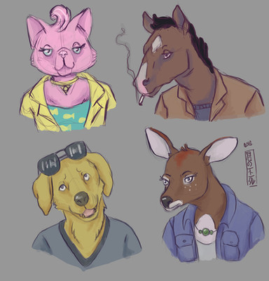 #anthro #bojack #carolyn #cat #deer #dog #horse #lab #princess #mr_peanutbutter #charlotte #bojack_horseman #princess_carolyn