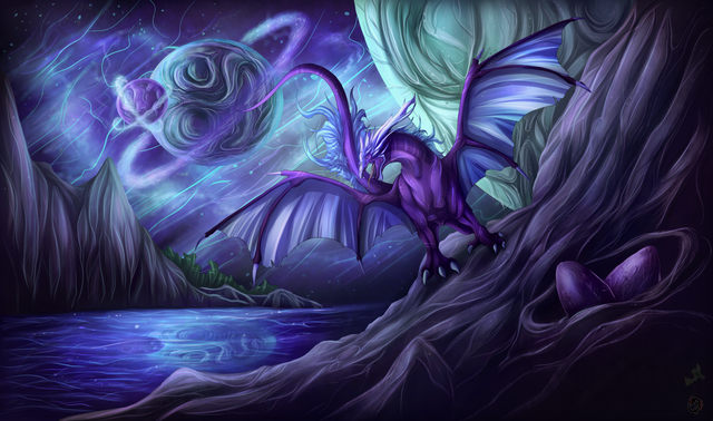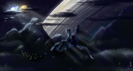 #dragon #dragoness #fantasy #galaxy #mountains #planet #sapphira #saturn #stars #wyvern