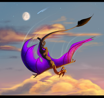 #clouds #dragon #dragoness #fantasy #flight #flying #oc #sapphira #sun #sunset #wyvern #dragon_oc #original_character
