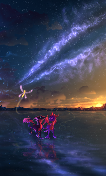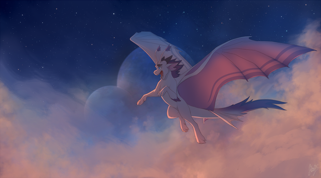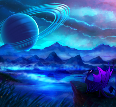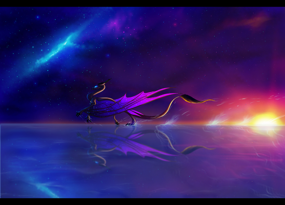 #clouds #dragon #dragoness #fantasy #galaxy #oc #sapphira #stars #sunset #wyvern #original_character