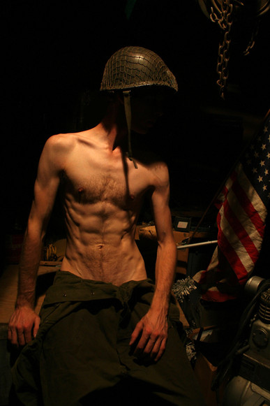 I agree with the other comments here the lighting, clothing and pose are excellent. The lighting highlights your frame very well and the pose is one of confidence. I think the space you photographed yourself in also adds to the image.