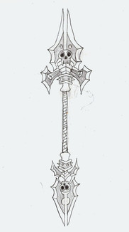 A Trident design I came up up with, with details of a reptillian tail spiralling down the haft of the weapon.Related content