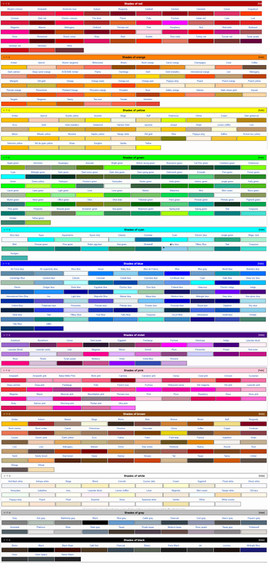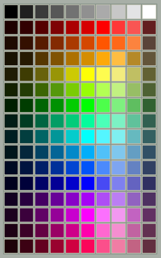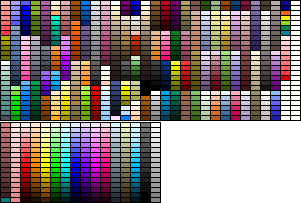 Consistency of colors is something I've had trouble with for a while, so I figured I'd try limiting my color palette. The problem I had with all the other palettes I've uploaded is the lack of darker colors. Sure I could get some dim colors, but nothing really dark, so I basically just pulled a bunch of different colors of the same hues based on certain points on the color picker square, except for the Brown and Gray sections. The brown was hand picked and not lined up with the grid and the gray is really just 7 shades of gray in a diagonal pattern with black and white in there in the corners.Related content