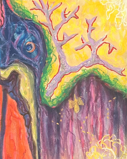 He looks very powerful, as he should. The background looks almost like brushstrokes - how did you do that with pencil? -Jessi