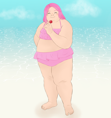 #bbw #beach #belly #bikini #bluehair #chubby #fat #girl #icecream #pink #plussize #swimsuit #woman #thunderthighs #fatkini