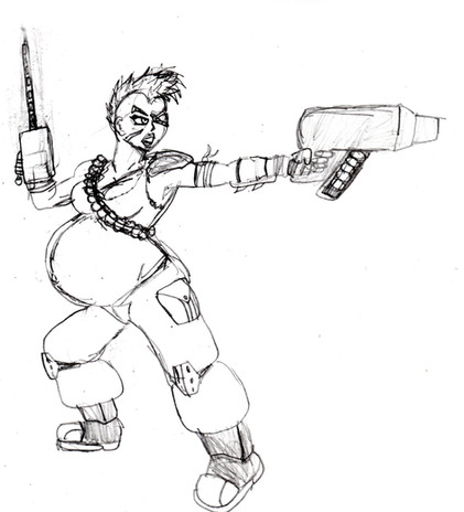 Ok, so I have alot of explaining to do with this pic.First off, Sydnie lives in a world full of magic and technology. She is a bounty hunter who tracks down and captures criminals who abuse magic. Seeing as these are very powerful outlaws, they are worth alot of money.