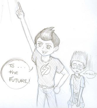 What are boyfriends for, if not to carry you around when you're feeling down?Ashi is lacking pants, because the graphite pencil I was using crumbled and smudged horribly in my knapsack, and didn't scan well at all. With some editing in Photoshop, he is pantless. All in all, I think they look rather cute, even if Kai's legs are a little too long.