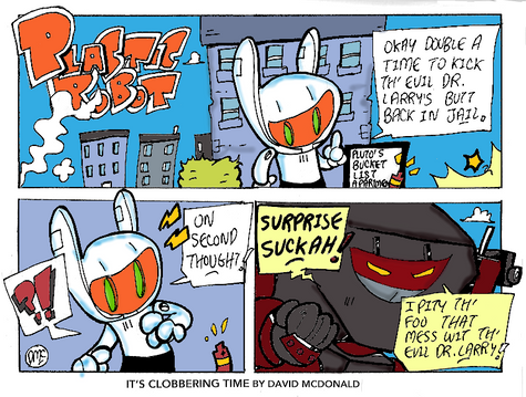 Stay tuned for the further adventures of Plastic Robot every Saturday morning.Previous strip...Married Stuff