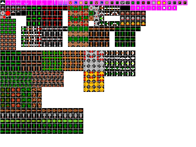 This is the sprite sheet of bosses in each stage. Some of the sprites are from Gradius series but I made some original bosses. Battle Cores are formed from Big Core Mk. I and Triple Core.Bosses: