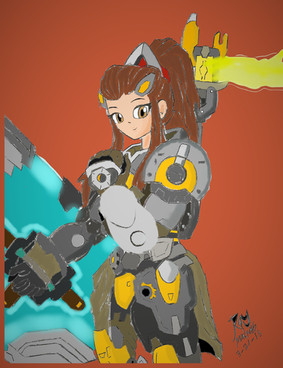 Right, time to get back to this like it hasn't been F***ing ages since I drew the last one.Anyway, Future Brigette (Which I read as Bridget for ages because I am so frigging dumb its not even funny) Basically a older slightly more battle worn Brigette, I'm guessing eye injury's run in the family.