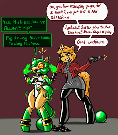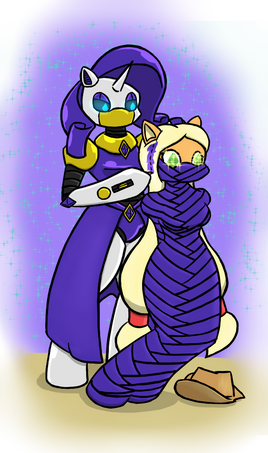Suggested by , rarity's form has been manipulated and her mind corrupted from a simple fashionista to a full on FASHIONATOR.Get in her way of making something or someone fashionable, she'll wrap you up in her ribbons to either be taken to be plasticised into a mannequin, stitch you into a set of clothing, or stitch thoughts into your mind, making you an obedient, evil slave to fashion!