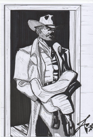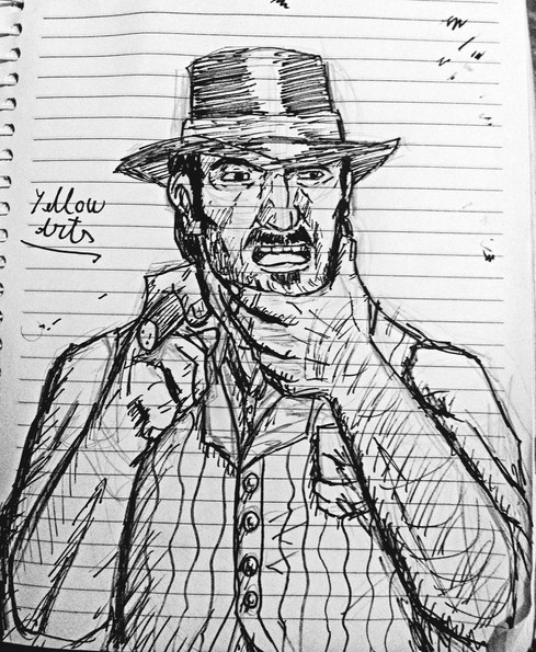 #cowboy #western #traditionalart #sketch #pencildrawing #pen #characterdesign #bandit #blackandwhite #characterart #conceptart #cowboyhat #desperado #dramaticpose #drawing #gunslinger #illustration #inkdrawing #monochrome #originalcharacter #outlaw #pistol #revolver #sheriff #trenchcoat #westernart #wildwest #yellowart #yellowarts #maskedcowboy