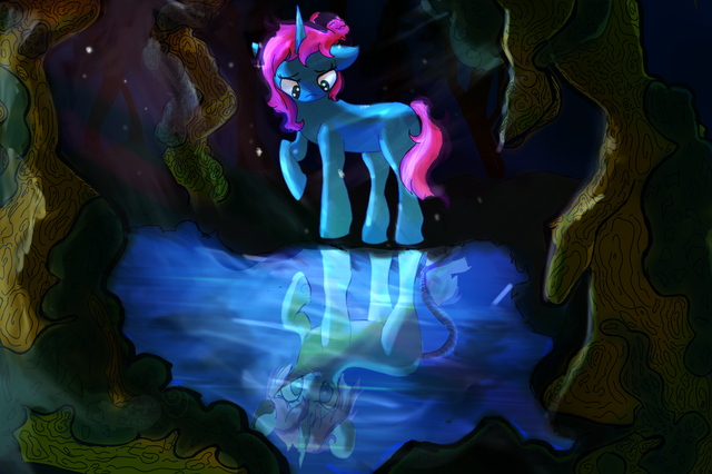#alone #fim #lyra #mirror #mlp #night #pony #unicorn #art #digitalart #fanart #mylittlepony #linelessart #canoncharacter #lyraheartstrings