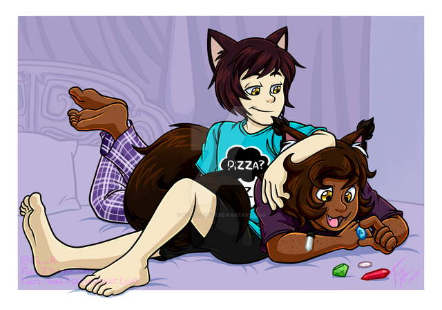 Reed and Luci having a game night while eating some yummy cake~Sketch and Luci owned by Twomario: www.pixiv.net/member.php?id=28…