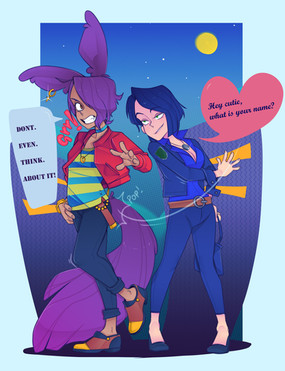 Reed and Luci enjoying a stroll outside, Luci got tired and is getting a piggyback ride home. Reed simply enjoys the cute evening they spent togetherSketch done by and Luci owned by Twomario: www.pixiv.net/member.php?id=28…