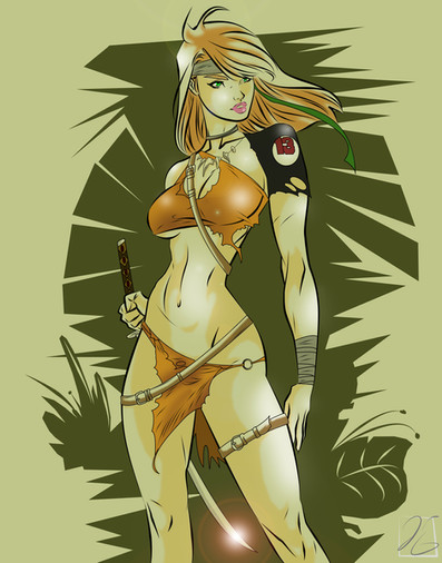 The outfit that the hunter is wearing looks awesome! I really like how you drew her anatomical figure and did her green hair!
