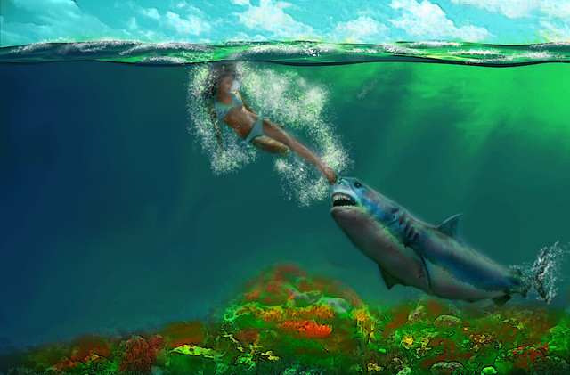 This is for 's monthly theme: Pool Party.It was inspired by the famous movie poster.