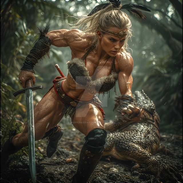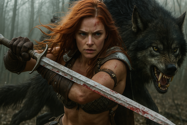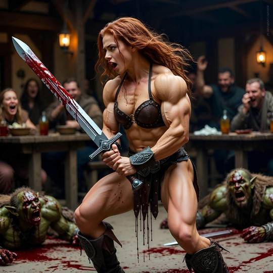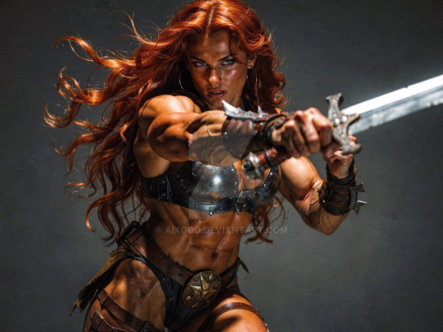 #warrior #fighter #warriorwoman #barbarian #fantasyart #fanart #abs #amazonwarrior #femalemuscle #musclegirl #redhead #redsonja #veins #werewolves #bicepsflex