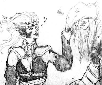 Fury raised a brow, “Is that so?” her grip on the comb tightened, “I will have some cross words with my dear brother then.” She growled. Blue eyes widened in panic as her youngest sibling turned to her, “Please don’t! Strife said he would tell everyone and make fun of me!”