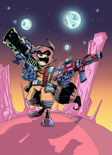 This is my completed coloured version of 's awesome Rocket Raccoon piece, the original of which can be found here jeremiahlambertart.deviantart.… and my WIP can be found here plugin848y.deviantart.com/art/… .I had a lot of fun with this, I'm really quite proud of it!