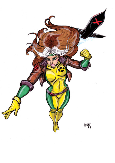 I always like the wild color scheme of Rogue, in both the hair and outfit. In this drawing in particular, you did a nice job with the subtle gradients. The highlights on the wrinkles in the jacket must have been especially time consuming.