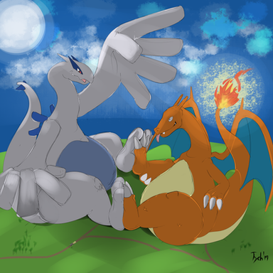 This is a request for :iconeddy10l: of his friend and a slowpoke!T'was quite fun. I've always love charizard. <3