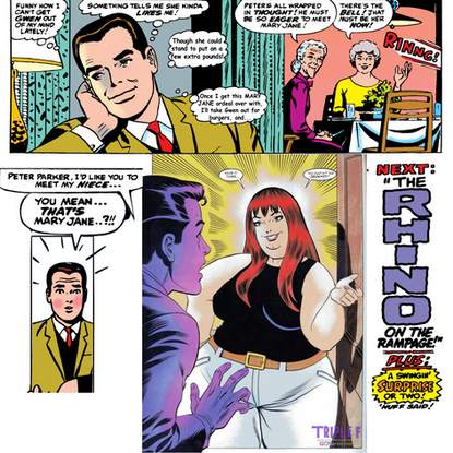 I was inspired by that βMissterioβ design lol wanted to do my own thing with it. Plus SSBBW MJ bc BRANDING. Thought her being Sue Storm in an FF biopic would be fun.Characters owned by Marvel Comics
