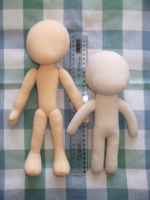 W00t, new pattern turned out beautiful ^__^Mike-kun stands (on his own two feet) at slightly over a foot and a half tall. His proportions are 1/3 head-to-body chibi. He has articulated limbs on a wire frame. His fingers are posable. And he is ready to be customized.
