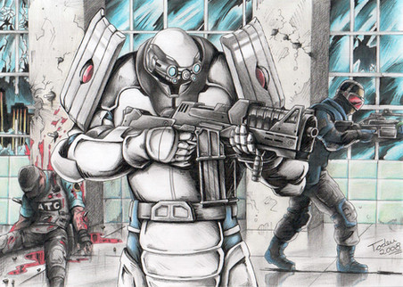 Broken in battle, this soldier contains a lot of tactical knowledge that the Cybernetic worshiper of the planetary compound mind wishes to extract.Pencil and paper
