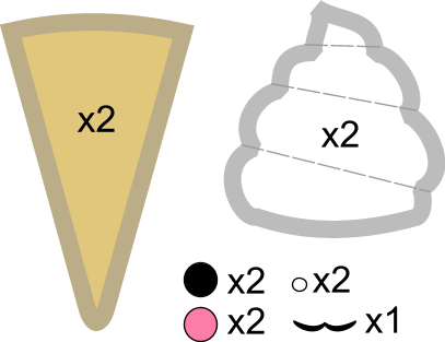 1. Sew (by hand) two of the small white dots onto two of the black dots (these are they eyes). The sew onto one of the larger white squares in desired place.