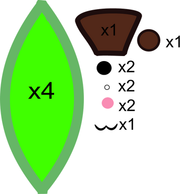 3. Sew the two triangular shaped green strips onto the third black dot so it looks like the 'XBOX' logo. Now sew this onto the middle of the same white square you sewed your eyes/cheeks/mouth to.