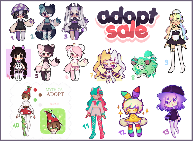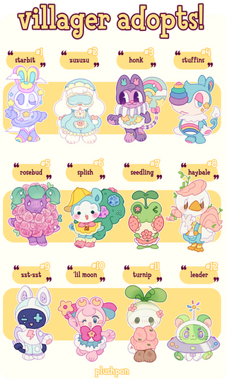things are a little rough right now so here's a big batch of mascot adopts to try and help out!!!