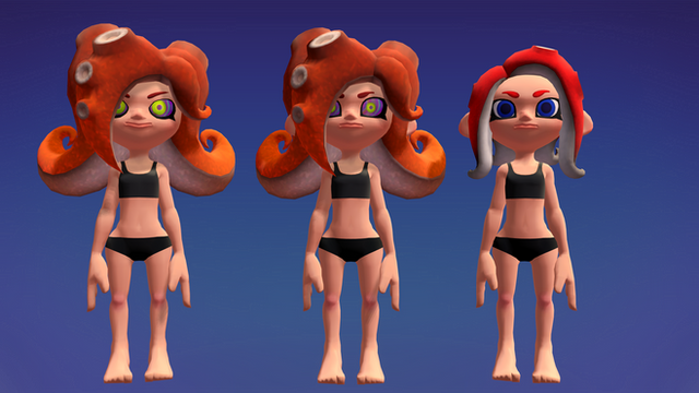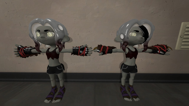 Appearance: An Dark Red Gearless Octoling With Yellow Eyes