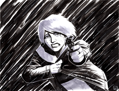 It looks like her turf is a subway tunnel, which would go with the title of "Underground".Β She seems to have been bleeding through her coat from a shot in her leg.Β