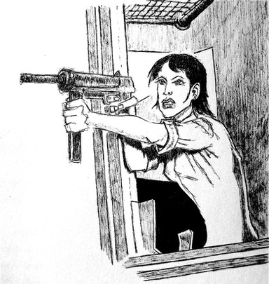 I was thinking sewers...and yes, there's a bullet in that leg. Β A mere nothing for her.