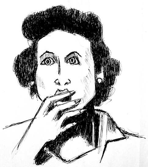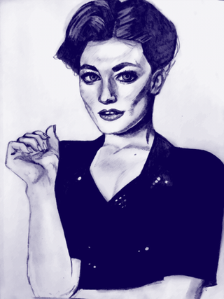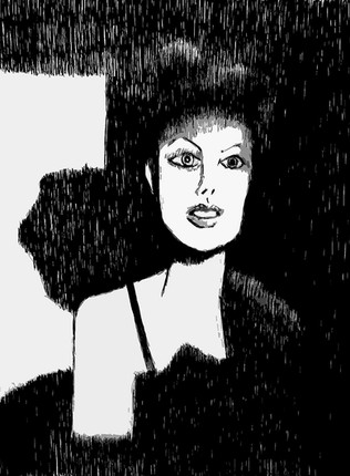 It reminds me of a film noir character. I like her intense expression. It fits well with the energetic lines.